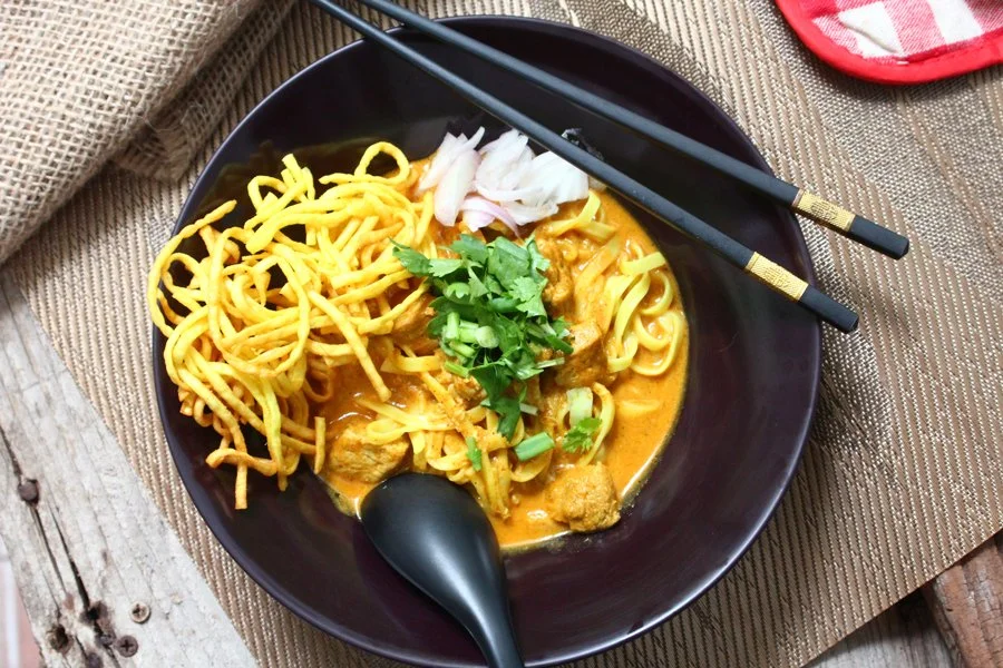 Traditional curry noodles with authentic Thai spices